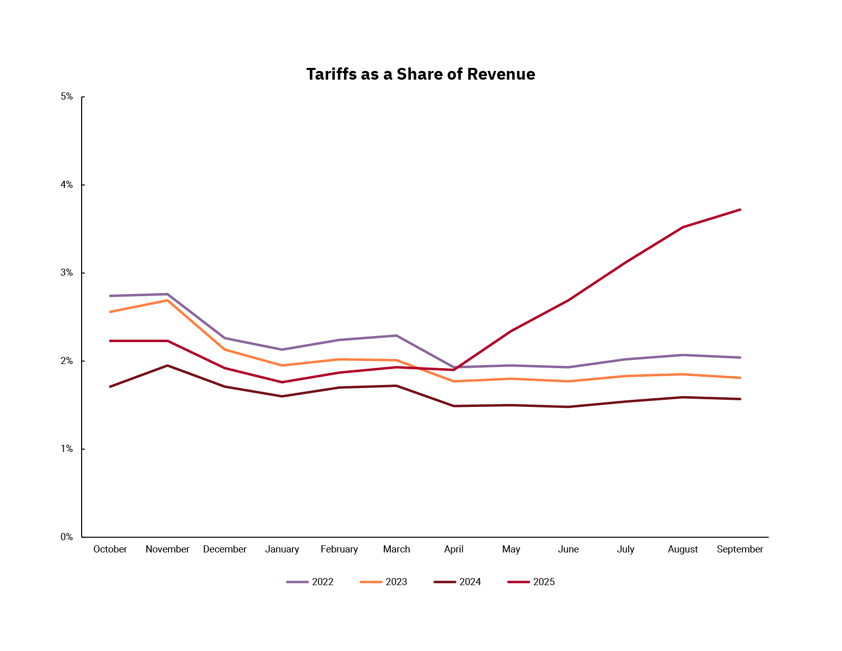 Some of these effects are clearer to see than others. Take revenue, for example. Gross tariffs and certain other excise taxes have brought in $264.7 billion in revenue into the U.S., as of Dec. 18, according to data from the Bipartisan Policy Center, calculated from daily Treasury statements. That's around 141% more than the amount of revenue brought in by gross tariffs and other certain excise taxes by that point in 2022.